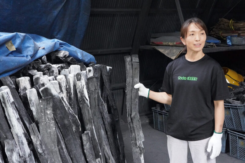 ツアーを案内してくれるのは浦幌木炭の背古円(せこ まどか)さん。2021年に浦幌木炭の先代の職人が引退するのを機に円さんが事業継承し、浦幌の炭窯文化を担っています。伝統のスタイルを踏襲するとともに、新しい発想を取り入れたチャレンジをしています。