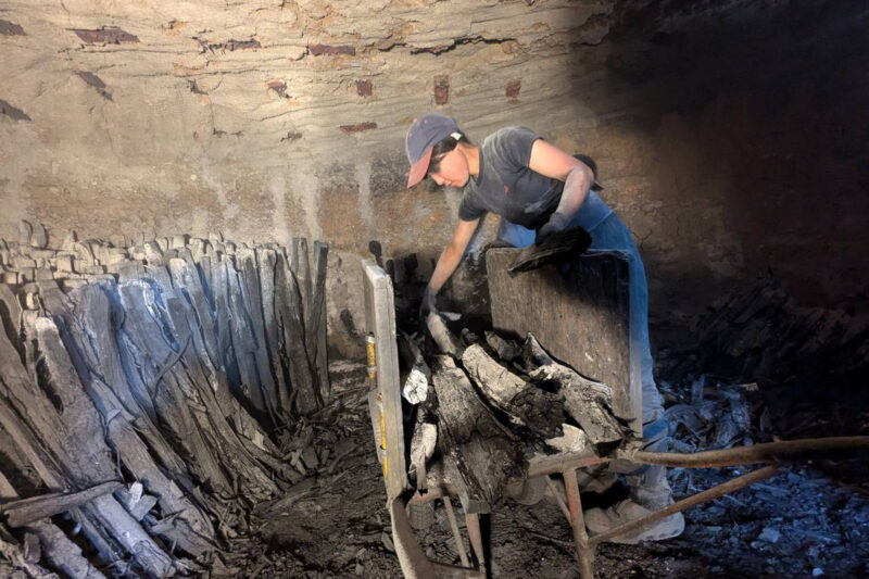 まずは、100年以上続く炭窯を見学します。職人たちの仕事ぶりを間近で見て、そして自分でも簡単な体験にチャレンジしてみましょう。体験は日によってさまざま。炭焼きの作業のスケジュールに合わせた内容になります。薪割りをしたり、窯へ木材を運び入れたり、出来上がった炭を製材・梱包したり。炭窯の職人の一人になった気持ちで挑戦!