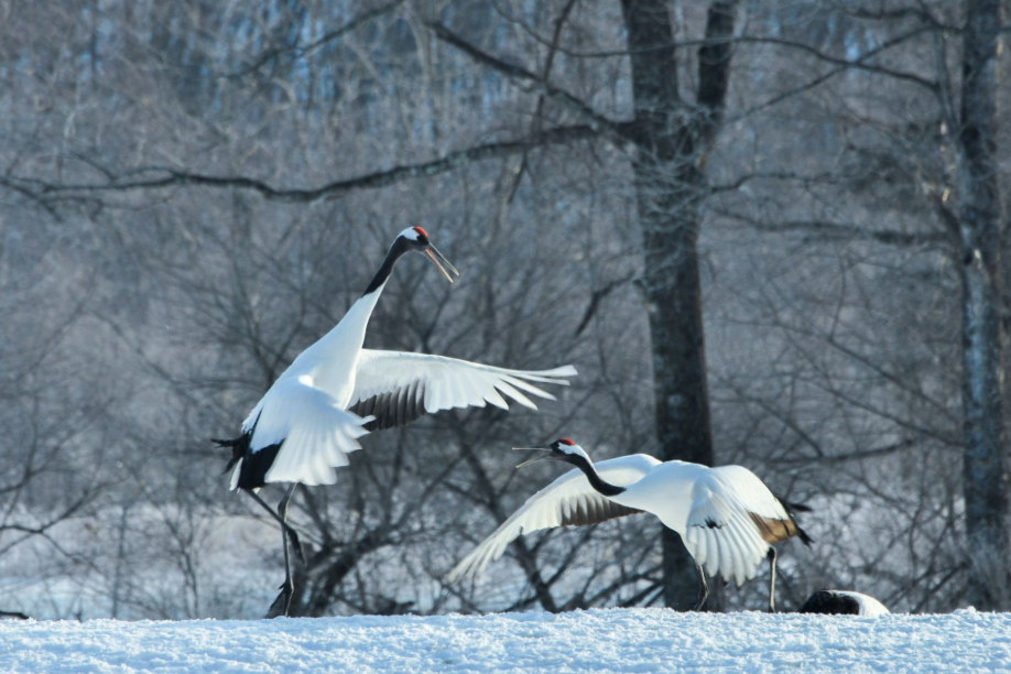 阿寒町は絶滅になりかけていたタンチョウとの縁が非常に長く、絶滅寸前から1,700羽まで増加した「奇跡の物語」はここの自然環境と住民のおかげだと言っても過言ではないです。このツアーは、その物語をタンチョウの保育や研究事業を行っている地元生まれ育った「阿寒国際ツルセンター」の館長から自ら、タンチョウの物語を紹介し、スノーシューを履いて深い森の中に入ってタンチョウを観察します。