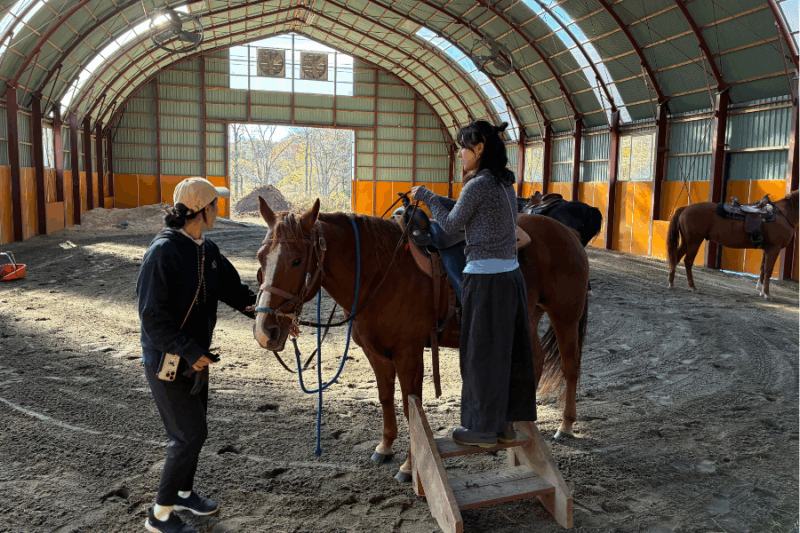 ウェルビーイング、大自然 馬たちと過ごす 特別な場所。HEART RANCHでは、ブラッシングと鞍付から始め、馬とコミュニケーションを取り、外乗コースを体験できます。参加者のレベルに合わせたガイド付きコースで、北海道の冬の景色を安全に満喫。標茶の雄大な大地の中、特別なひとときを味わえます。