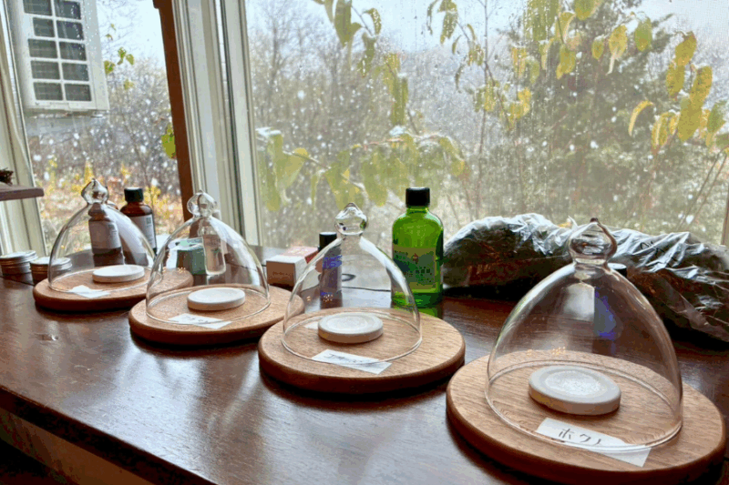 滝上は日本国内でトップシェアを誇る和ハッカの産地です。ワークショップの前にまずは香りをテイスティング。感性を研ぎ澄ませましょう。