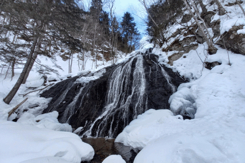 積雪・天候を見極め、ベストな冬景色へご案内。霧氷の森や静寂の雪原など、一期一会の瞬間に出会えます。※写真は霞の滝です。