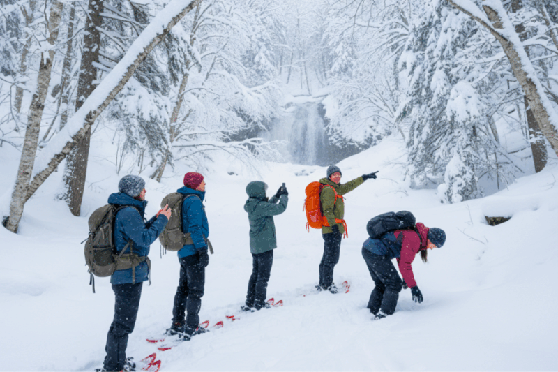 トムラウシの自然の中をスノーシューで散策。初心者も安心のレクチャー付きです。凛とした空気と冬だけの絶景を、無理のないペースで楽しめます。
