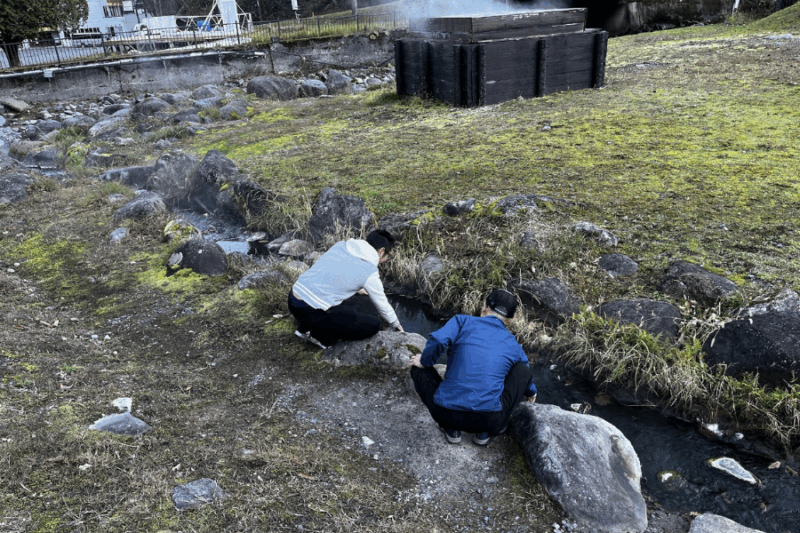 翌日9時半からツアースタート。まずはトムラウシのアイコンでもある「温泉」について、東大雪荘の周辺を散策し、源泉の見学など学習体験を行います。